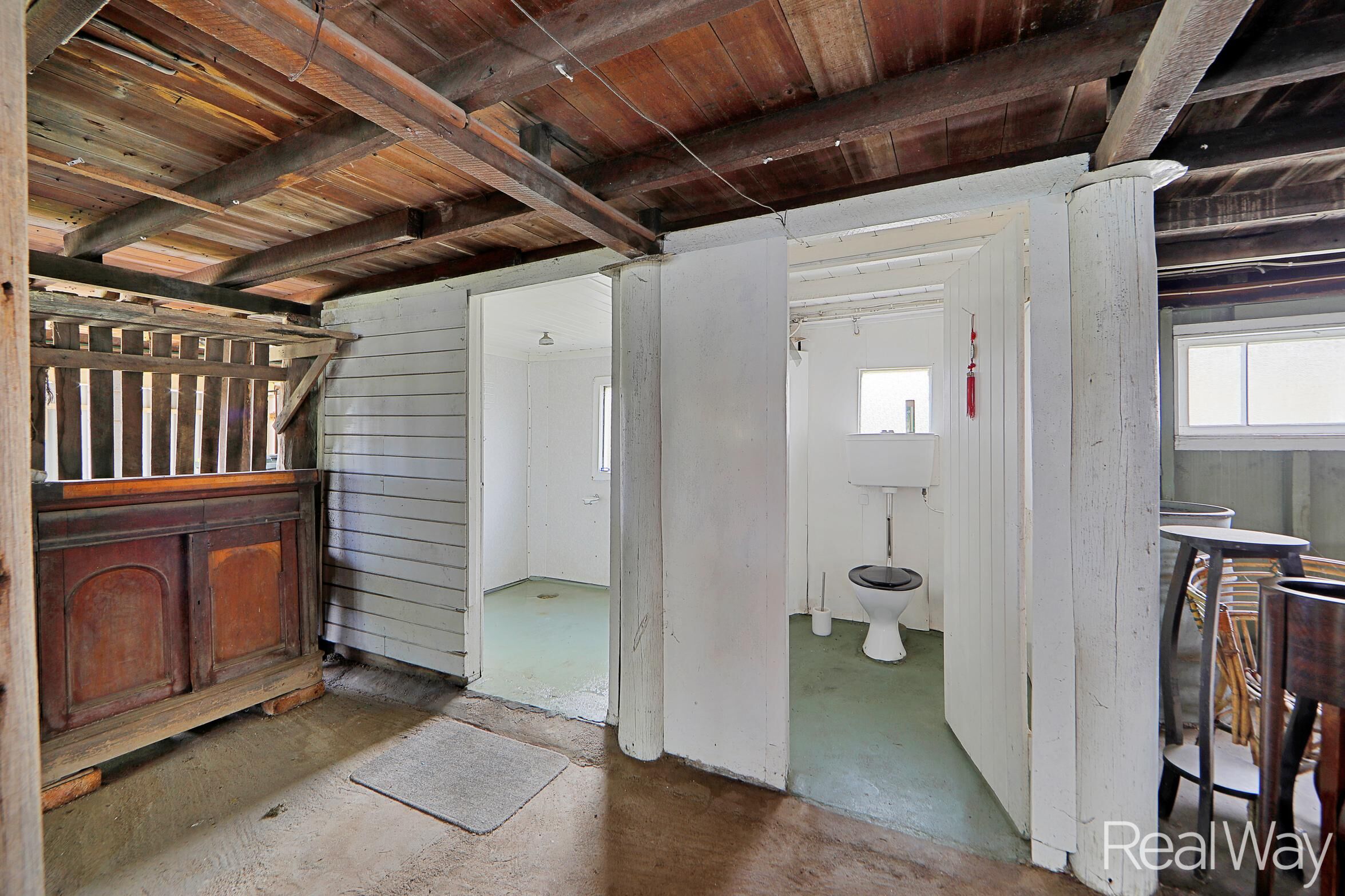 Moving down the rear stairs you will find a lockable enclosed section which is not only great for storage but also has the laundry with traditional larger sized tubs, a second toilet as well as an additional shower. This is the perfect space for someone handy to spread out and make a mess!